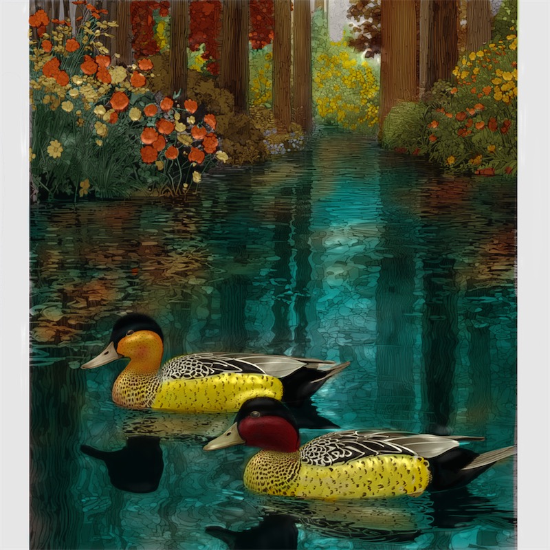 This is stunning!!! The color of the water is insane… the flowers and the reflection are even more beautiful… and the ducks… those lil fellas are gorgeous. One of my faves this morning.